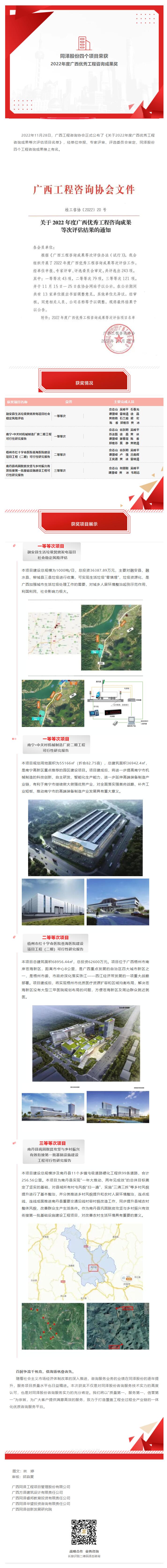 喜訊 | 同澤股份四個(gè)項(xiàng)目榮獲2022年度廣西優(yōu)秀工程咨詢成果獎(jiǎng)
